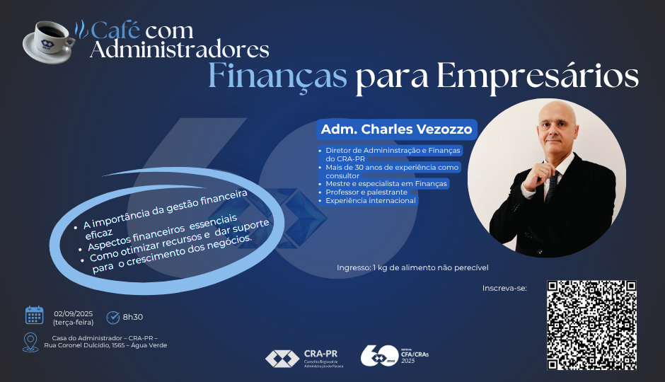 Neste encontro exclusivo promovido pelo CRA-PR, vamos abordar os principais desafios e estratégias financeiras para empresários que buscam crescimento sólido e sustentável.
